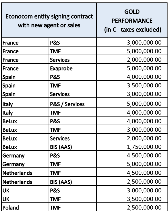 The Business Volume recorded on already active customer accounts assigned to the agent or future agent by the mandating Econocom entity during the first 12 months (from the date of entry into force of the agreement between Econocom and the agent or refered salaried sales representative) does not count towards the Mission Impossible performance thresholds.